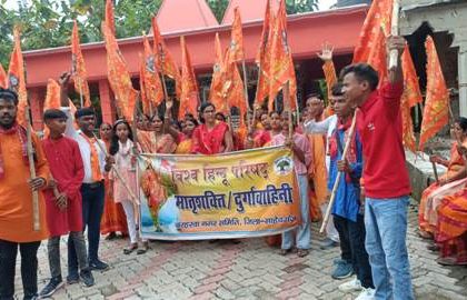 विश्व हिंदू परिषद और दुर्गा वाहिनी ने किया शस्त्र पूजा