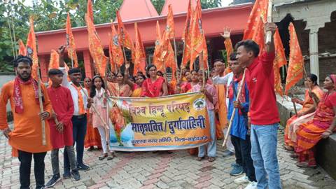 विश्व हिंदू परिषद और दुर्गा वाहिनी ने किया शस्त्र पूजा